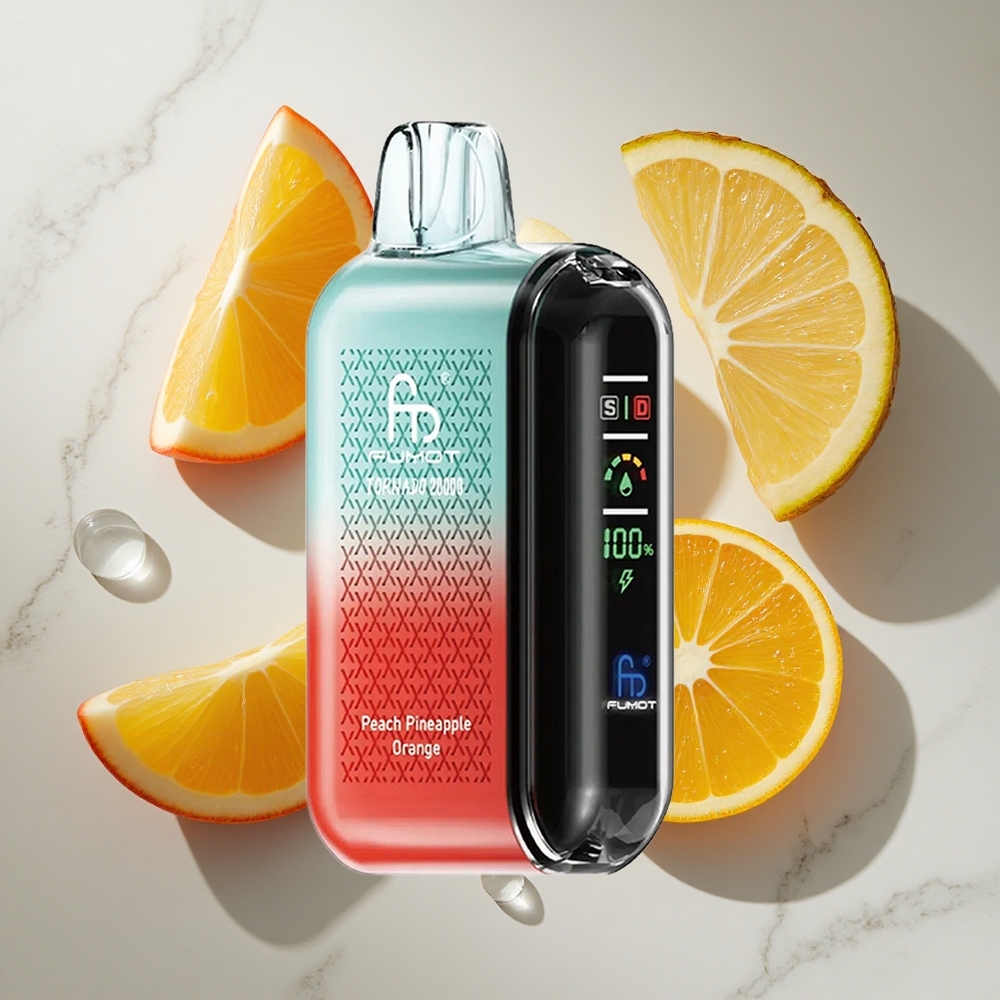 Home| Populaire Producten| Fumot| Perzik Ananas Sinaasappel Fumot Tornado 20000 Puffs Nederland vapes Dual Mesh Coil 20ml