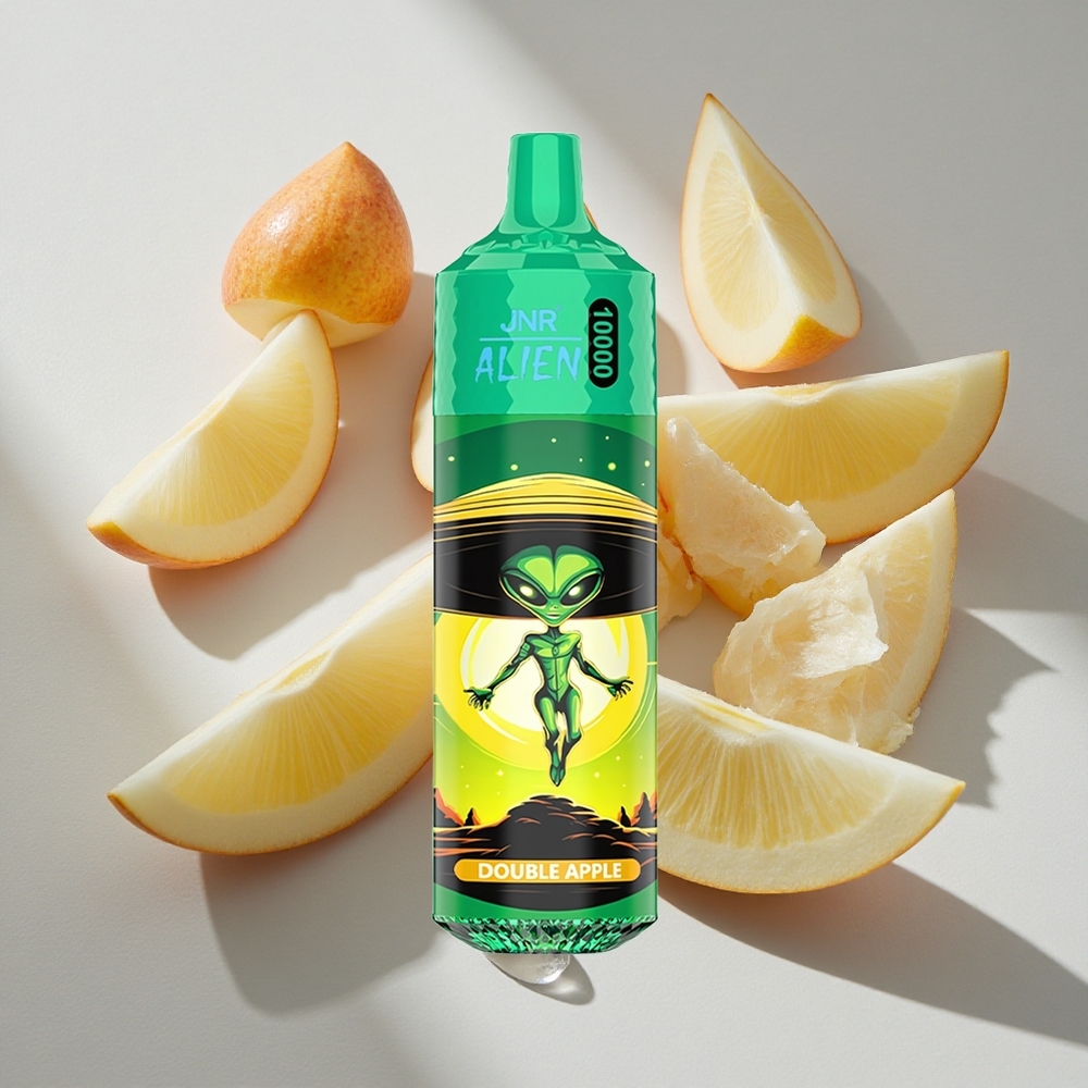 Home| Populaire Producten| JNR| JNR Alien 10000| Dubbel Appel JNR Alien 10000 Puffs Nederland vapes met 20ml e-vloeistof en RGB LED
